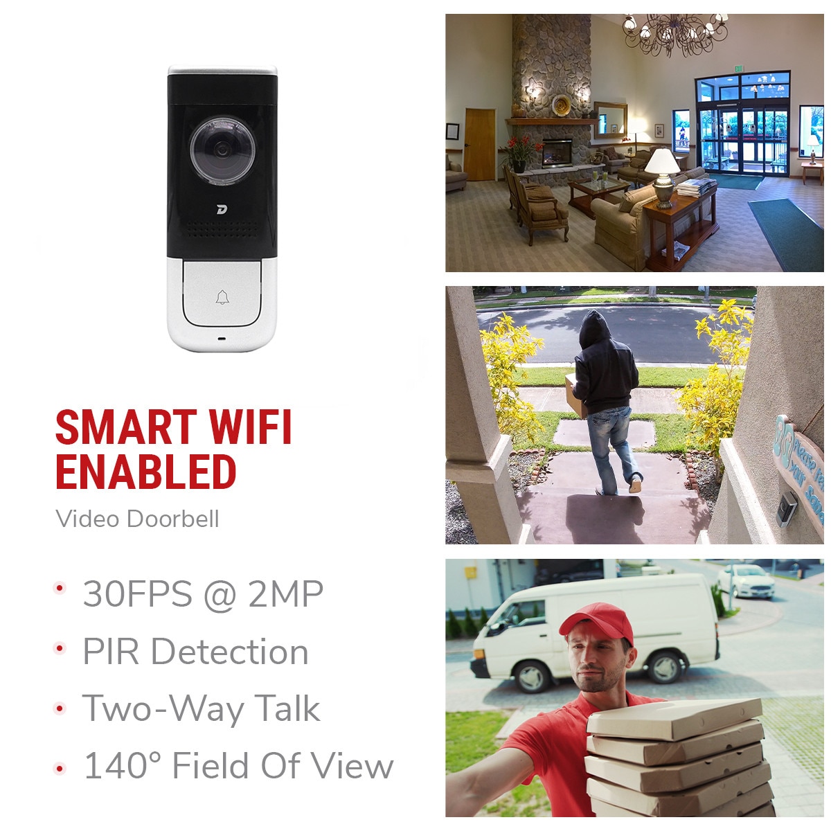 Dash Dinger is not just another consumer-level low-res (webcam) Wi-Fi doorbell camera. It is a professional-grade, 1080p HD video security camera with a super wide-angle 1.8mm lens for a 140° field of view, carefully engineered to fit into an electronic doorbell.