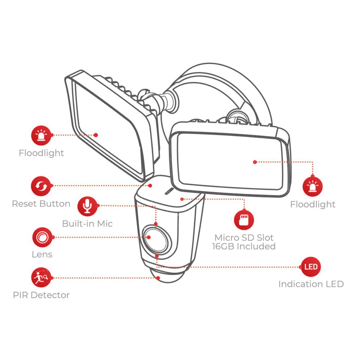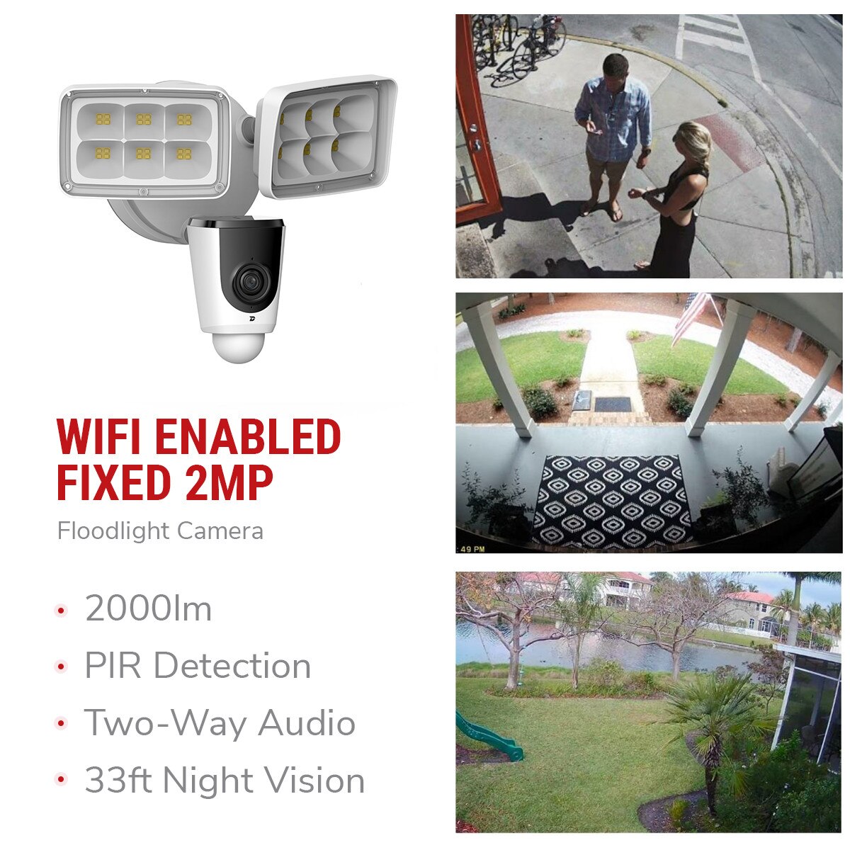 Flooder delivers full 1080P HD/2MP with a motion-activated HD camera for live video, and protects its coverage area with dual built-in ultra-bright 2000 lumen LED floodlights. Flooder's super-wide 114° field of view is perfect at home for patios, driveways, garages, dog runs, and pool areas and at work it provides lighting and video & audio coverage for entrances & outdoor equipment storage areas.