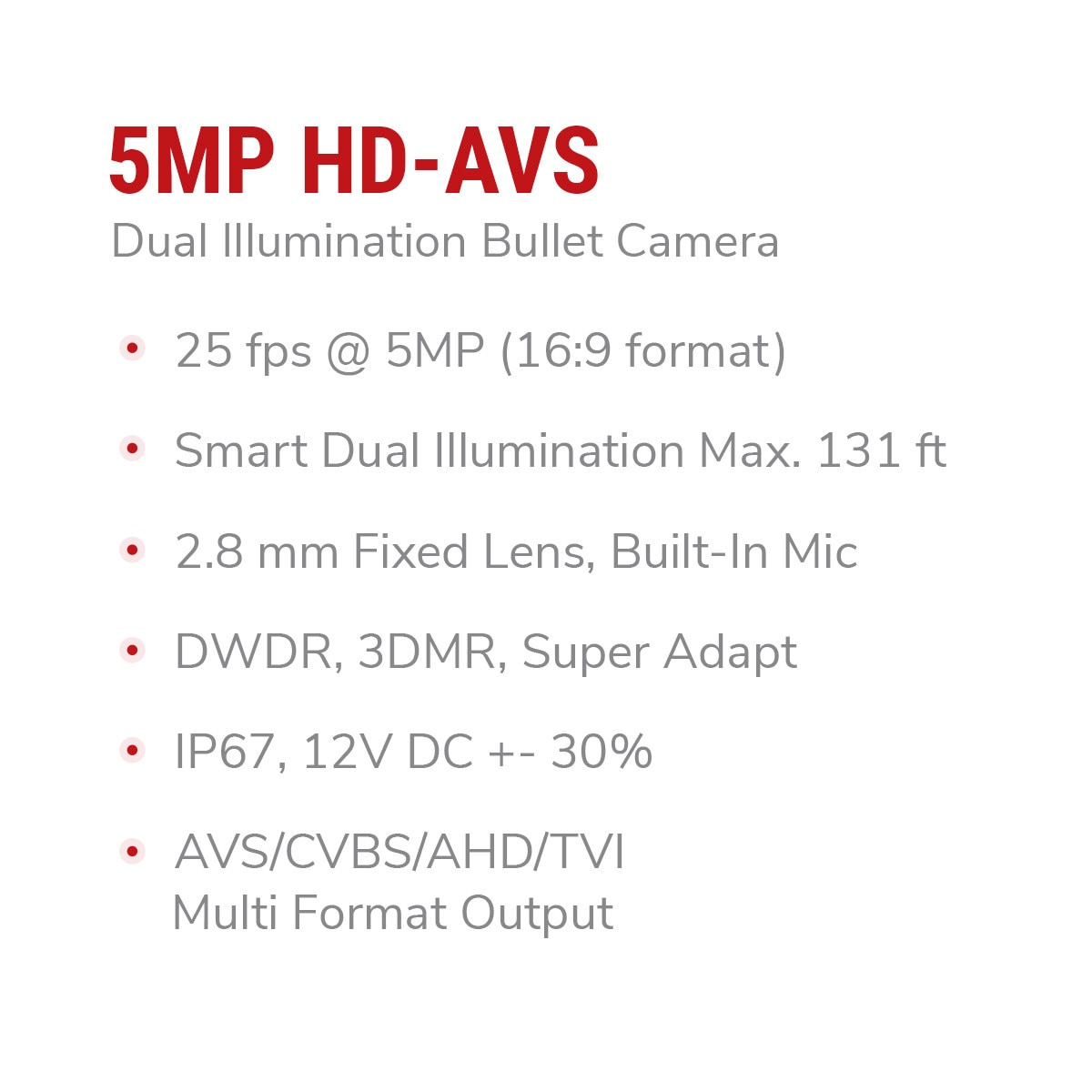 | Illumination On/Off Control: | White Light Mode; IR Mode, Smart Dual Illumination Supported* (With appropriate HDVR and firmware) |