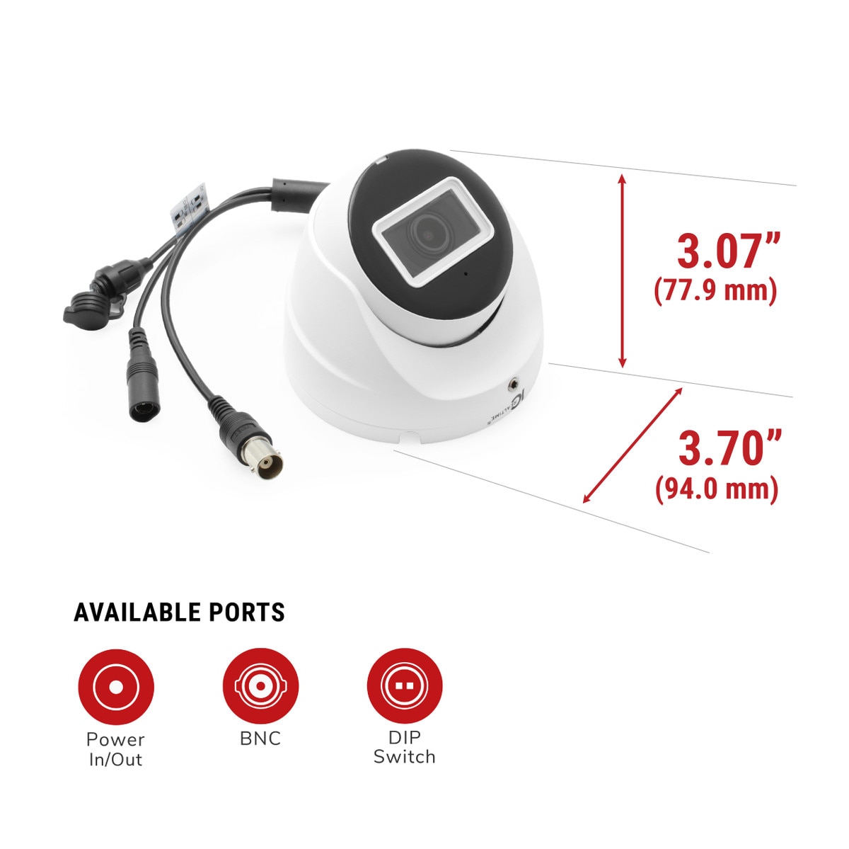 Introducing the HDEG-E50F-IR-M4 from IC Realtime — a powerful addition to the Edge Lineup, designed to deliver uncompromising performance and versatility in coaxial surveillance. This compact eyeball turret camera offers crystal-clear 5MP resolution (2880 × 1620) in a cinematic 16:9 format, capturing up to 25 frames per second with vivid clarity. Equipped with a 2.8mm lens and an ultra-wide 106° horizontal field of view, it provides expansive coverage with minimal blind spots, making it ideal for both residential and commercial installations.