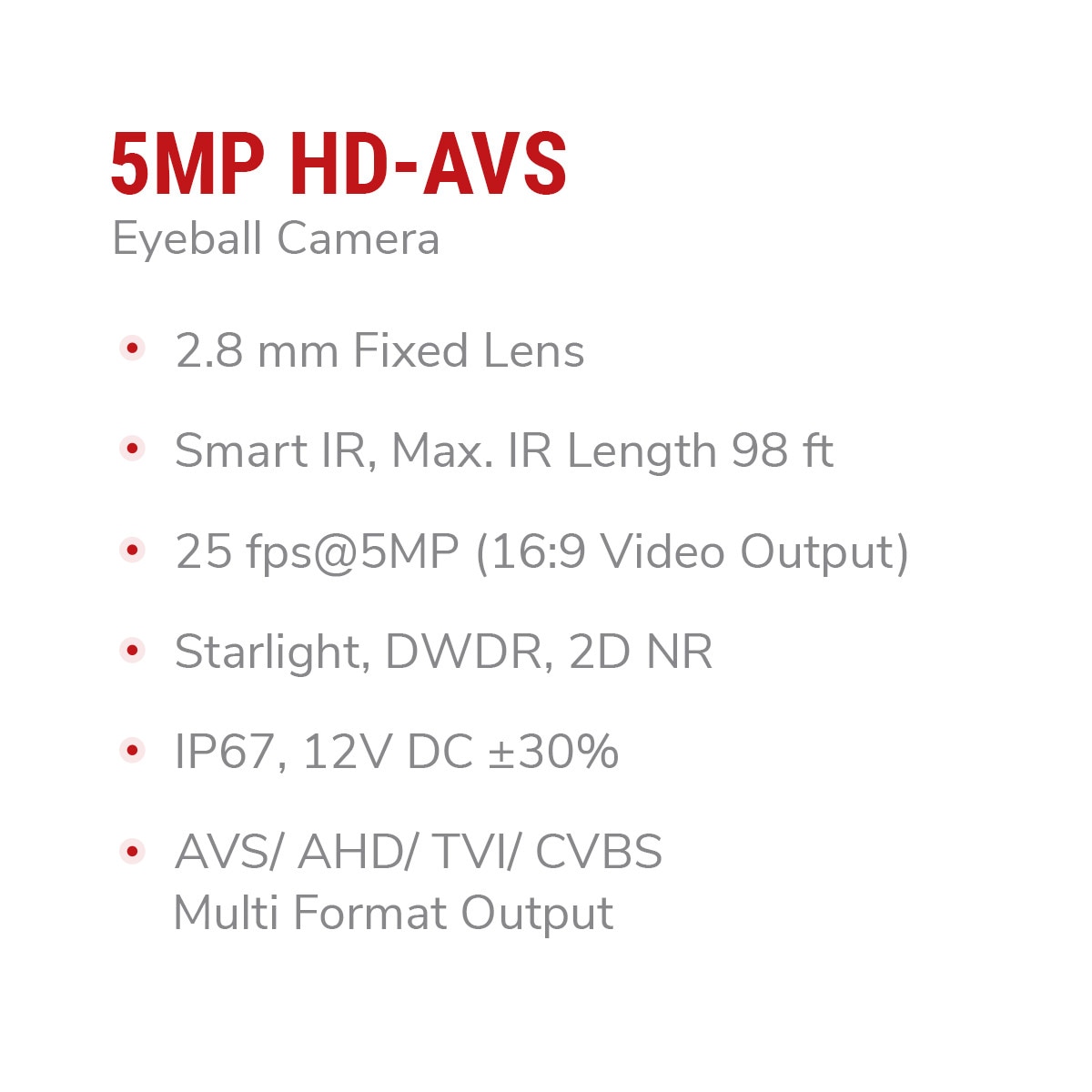 | Frame Rate: | AVS: NTSC: 5MP@25 fps; 5M+N@20 fps; 4M@30 fps; 1080P@30 fps PAL: 5MP@25 fps; 5M+N@12.5 fps; 4M@25 fps; 1080P@25 fps AHD: NTSC: 4MP@30 fps PAL: 4MP@25 fps TVI: NTSC: 5MP 16:9@20 fps PAL: 5MP 16:9@20 fps CVBS: NTSC: 960H PAL: 960H |