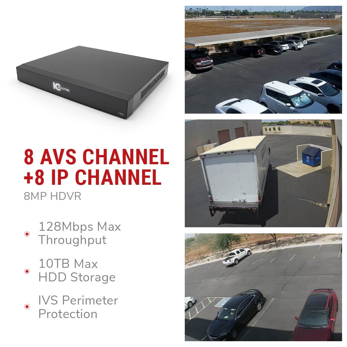 Understanding the importance of 8-channel coax recorders for our video security partners, IC Realtime has just updated the current MX-0808 version to the AI3 with a new processor, updated cybersecurity, upgraded 8MP/4K & ONVIF 21.12 camera compatibility & even better AI face recognition. HDVR-MX0808-1U4K-AI3 maintains the previous version’s Perimeter Protection, IVS & IMD capabilities on up to 8 channels, making HDVR-MX0808-1U4K-AI3 the best eight-channel coax HDVR we have ever offered. This new HDVR is 100% 4K capable from camera inputs thru recording to HDMI output. Beyond bringing beautiful Ultra High Definition (UHD) video to the HD Over Coax world, the MX0808 also uses our most advanced FlexSmartAi systems for human & vehicle detection, advanced perimeter protection, and face recognition with an internal 20,000 face database. MX0808 also has 8 alarm inputs and 3 alarm relay outputs for easy integration with security systems. Of course, the new MX0808 also has all the professional features expected from IC Realtime, including updated 21.12 Onvif camera & CGI compliance and dual SATA-III hard drive ports for up to 20TB internal storage.