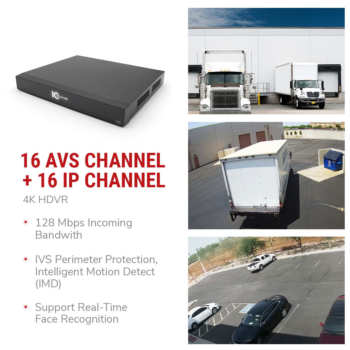 For years, 16-channel coax-based DVRs were the largest multichannel video recorders available and became the mainstay of larger analog security camera systems. But no matter how advanced these 16-channel DVRs were, they were limited to 16 direct-connect cameras. Now IC Realtime’s HDAVS Petntabrid recorders have changed that with our HDVR-MX1616-1U4K-A3 - a single HDVR with 16 direct BNC and 16 available IP network channels. The original HDAVS MX-1616 series has been a popular choice for camera integrators charged with legacy system upgrades. The new AI3 version uses a new processor with updated cybersecurity, adds 2 channels of AI face recognition with metadata encoding for faster searches, and adds 12 channels of Perimeter Protection (up to 6 channels in Advanced mode) and IMD capabilities on up to 16 channels.