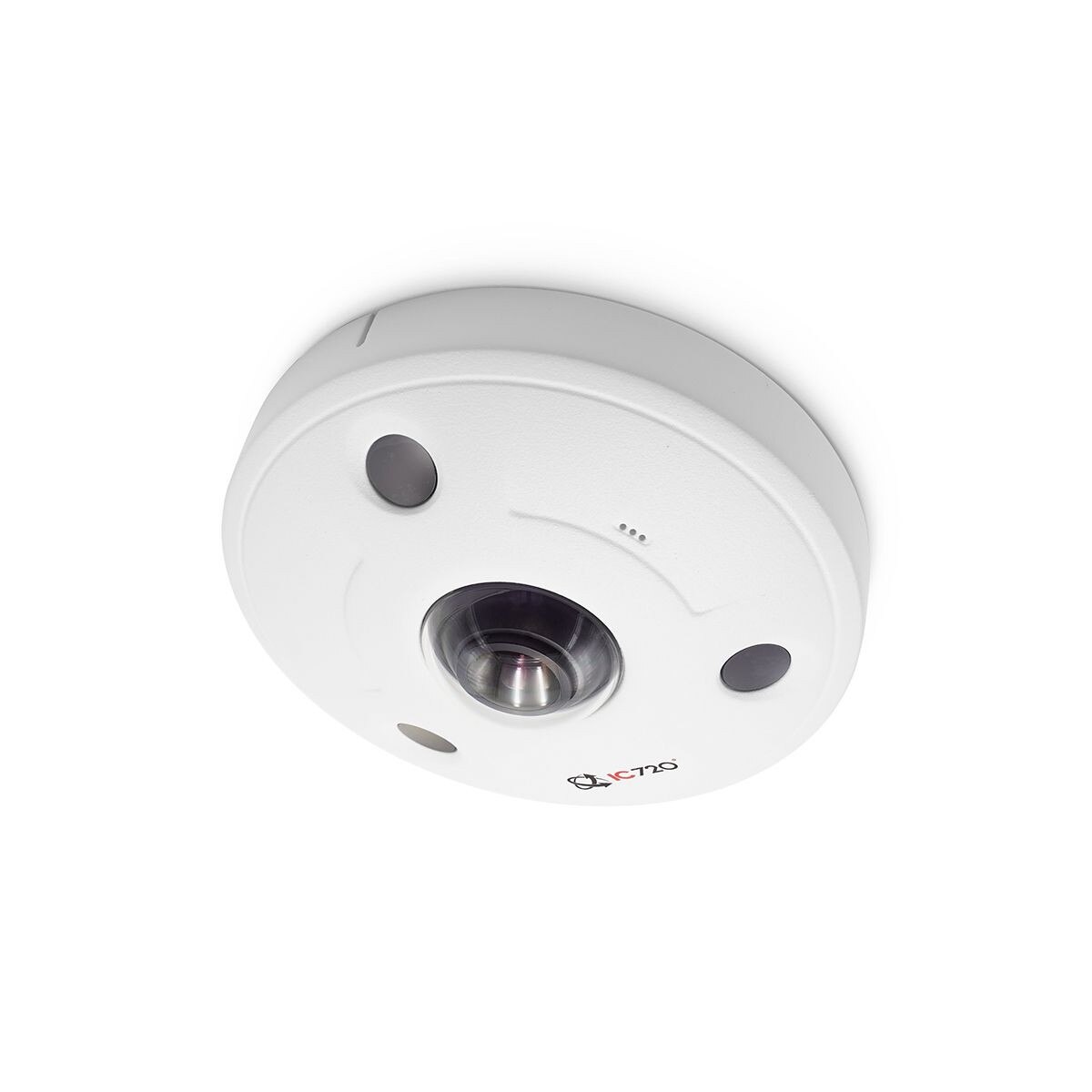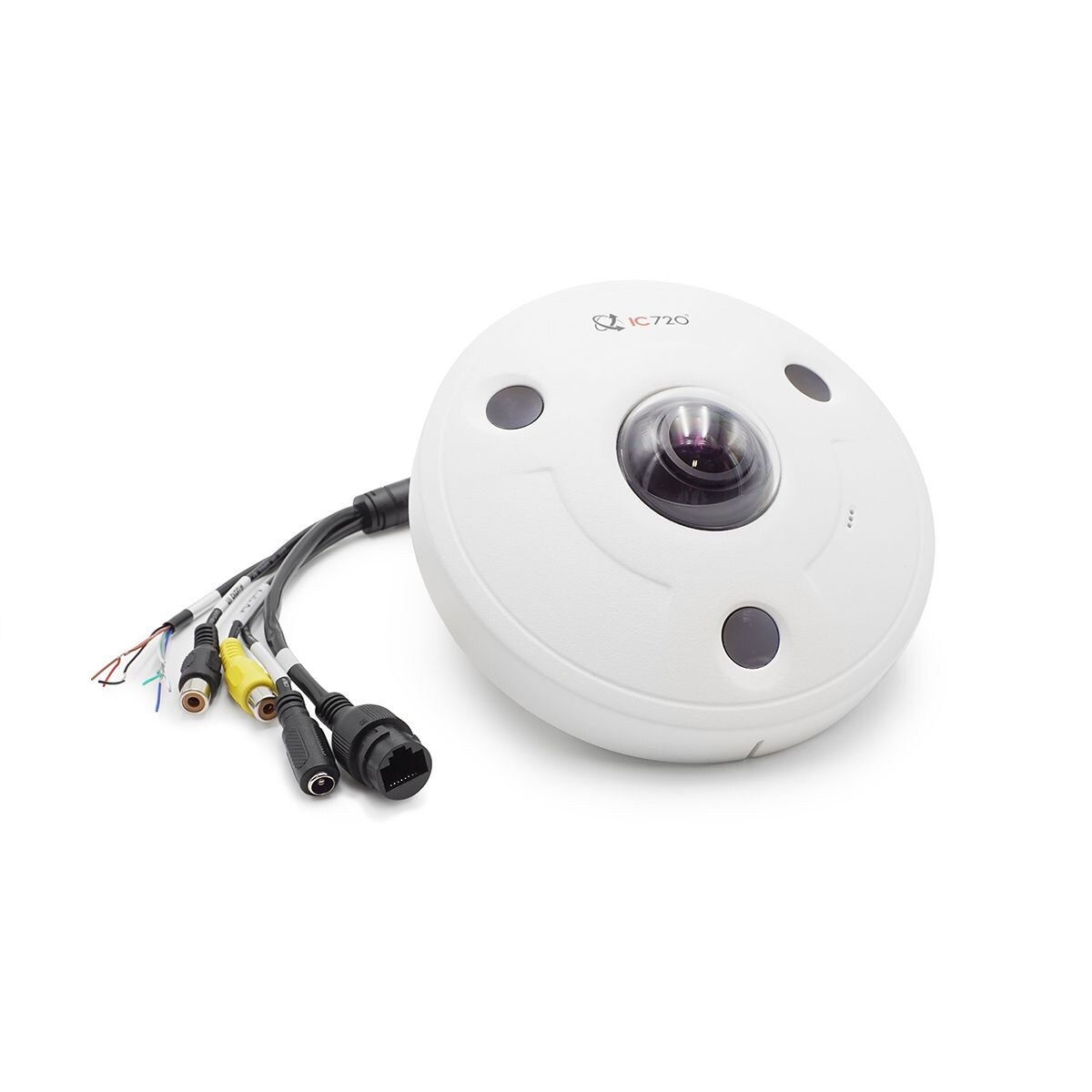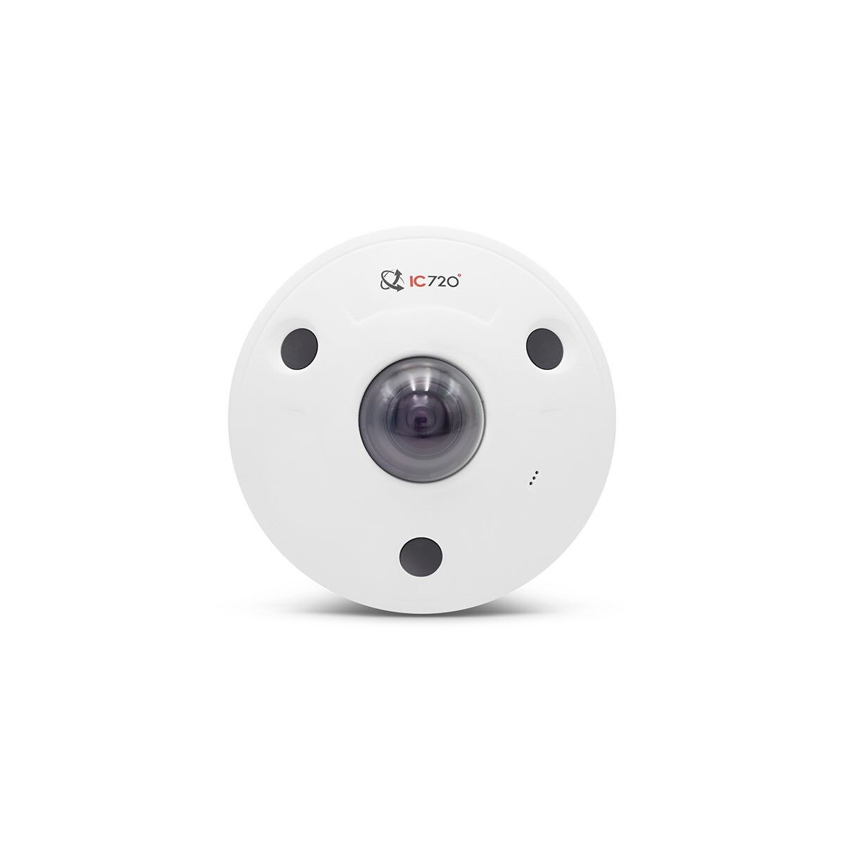 A 12.0 megapixel 360° Indoor/Outdoor Dome camera with a built in microphone. The ICIP-D720IR-T12 series camera is a real-time, 360° situational awareness camera. It is capable of recording a wide area of surveillance and de-warping the native fisheye view in order to watch a stream that is undistorted to the human eye.