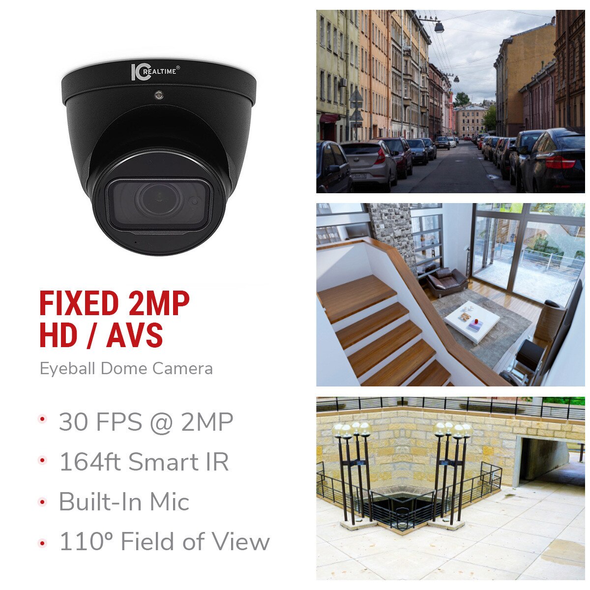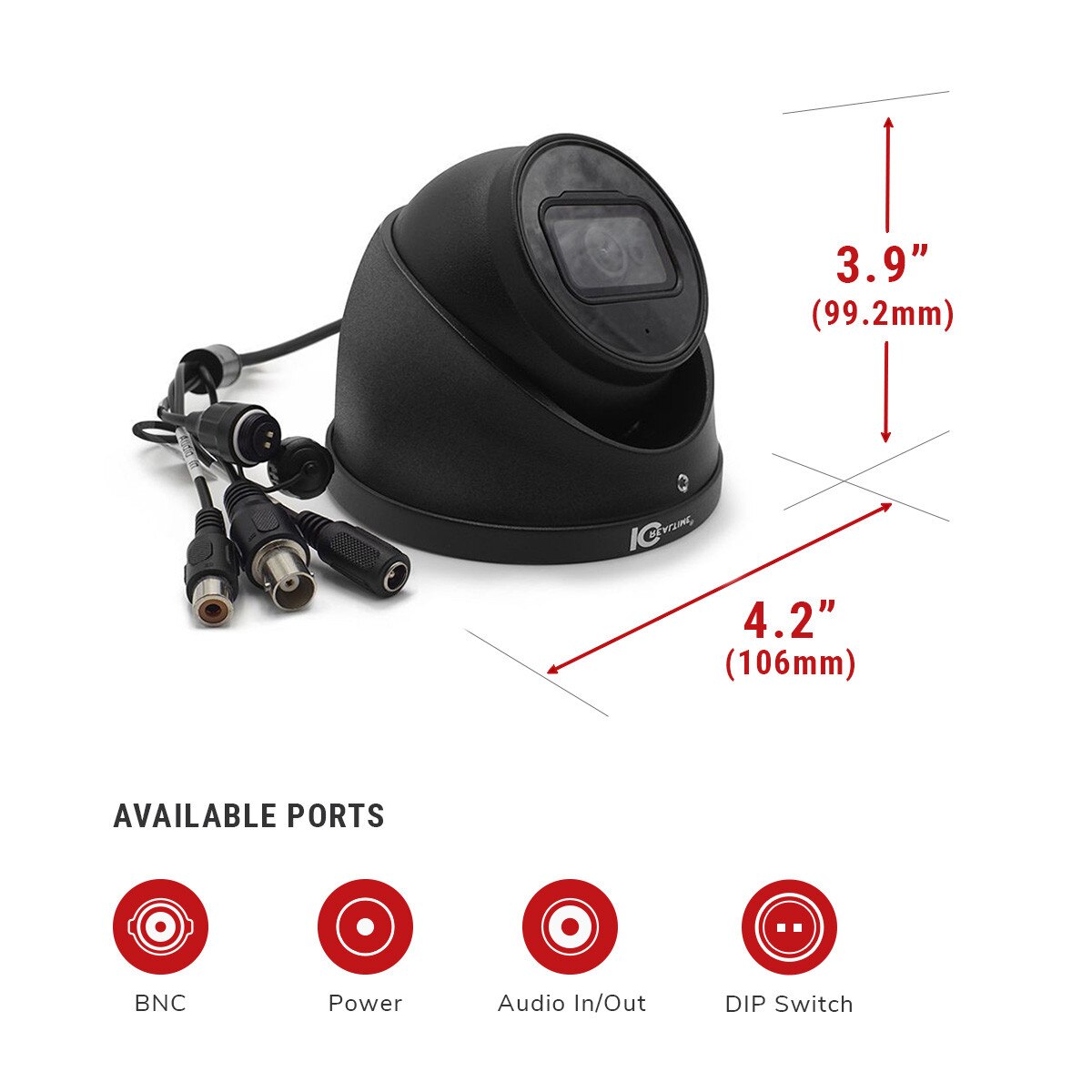 The ICR-300 HDAVS series cameras have been a staple in the IC Realtime product lineup for many years. Their small form factor but large delivery of crisp, clear video makes for a very versatile HDAVS surveillance camera. The locking ball and socket design allows for many different mounting angles as well as full use of 2 powerful smart IRs with range up to 197ft. Boasting a 2MP HD sensor, true 120dB WDR and a motorized zoom 2.7-13.5mm lens, the ICR-300H4 can tackle an infinite amount of applications.