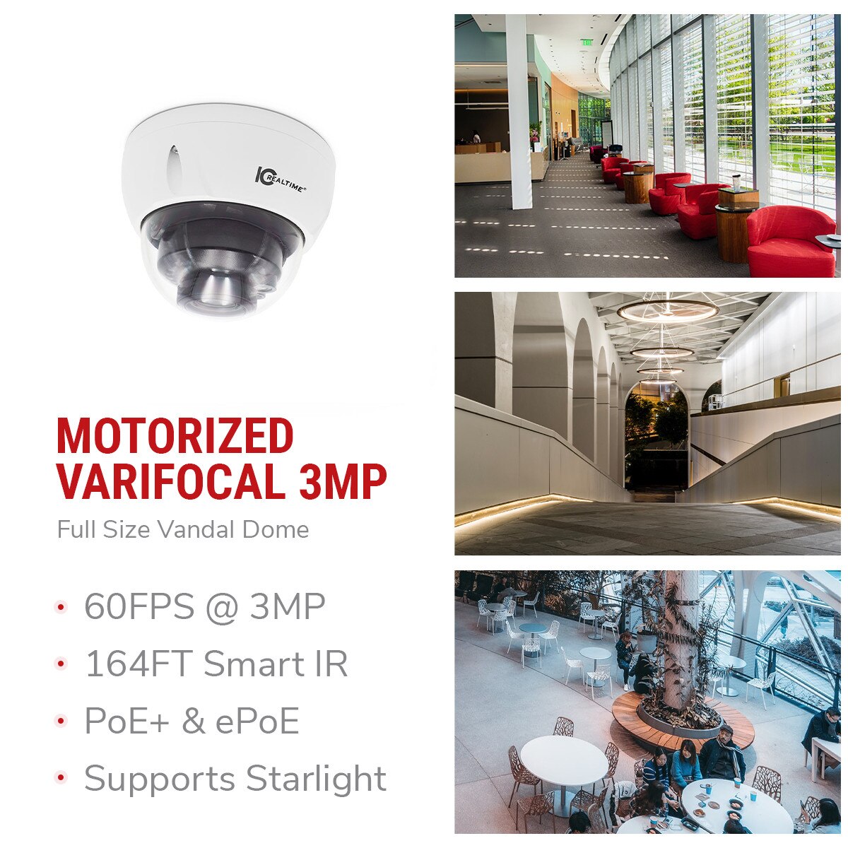 This sleek indoor/outdoor IP dome camera packs some serious hardware. Powered by a large 1/2.8''CMOS i-Sniper sensor, this image sensor achieves maximum light gathering capability with image sharpness levels to match. Due to the large image sensor, the camera itself is able to remain in color (Day) mode longer than typical Day/Night cameras, and display full color video with only minimal lighting. On top of the iSniper imager sits a motorized 2.8mm-12mm lens which provides anywhere from a 87 to 31 degree horizontal Field of View. The camera also features PoE+/DC12V/24VAC power options and IK10 and IP67 protection. Typical applications for this type of camera include: Parking Lots, Warehouses, Exterior Residential, and commercial applications.