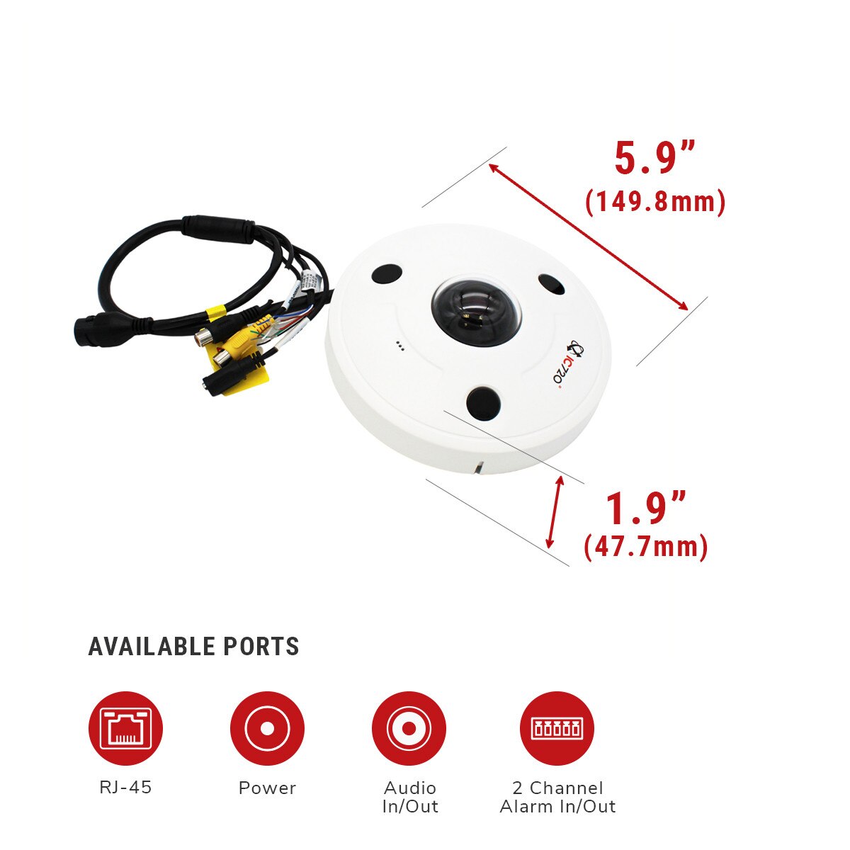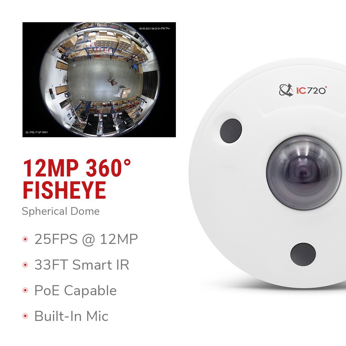 IPEL-F12F-IRW1 is IC Realtime's virtual reality 360 degree AI video camera, the perfect answer to provide wide-area coverage.