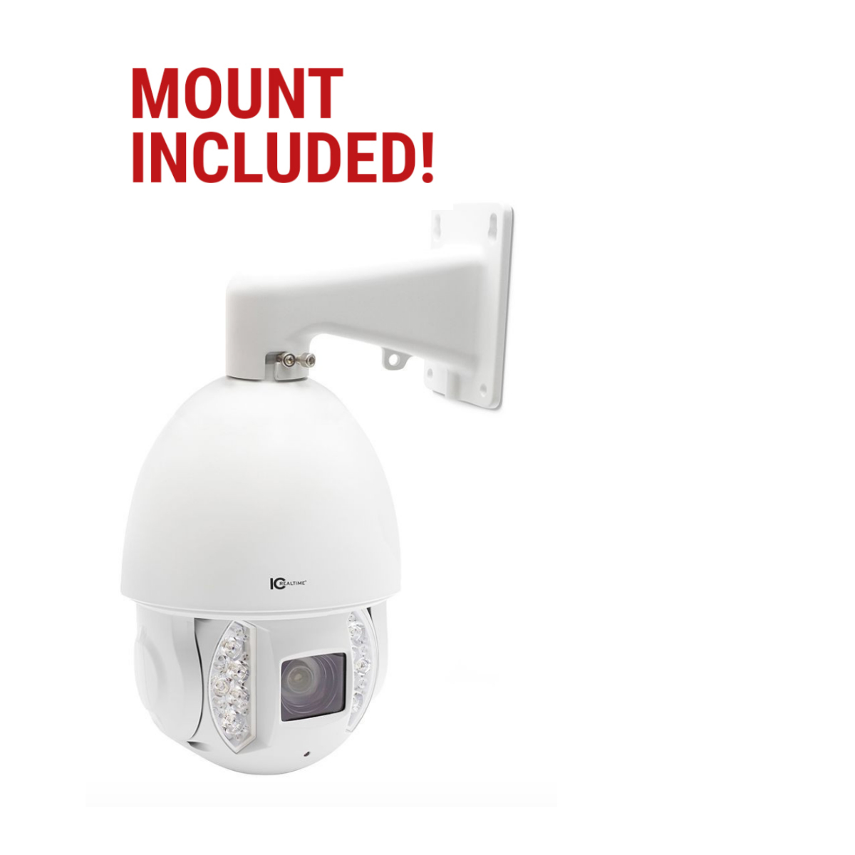 This camera is a fully weatherproof, day/night, high resolution IP camera. This PTZ adopts a unique design by physically separating the IR LEDs from the camera block itself, resulting in perfect night time imaging without causing issues such as IR reflection. The optics on this camera are a 30X powered zoom (6 - 180MM), delivering a crystal clear 5 Megapixel image. 0 lux is not a problem for this camera, as the high intensity IR LED's are capable of illumination at distances up to 656'.