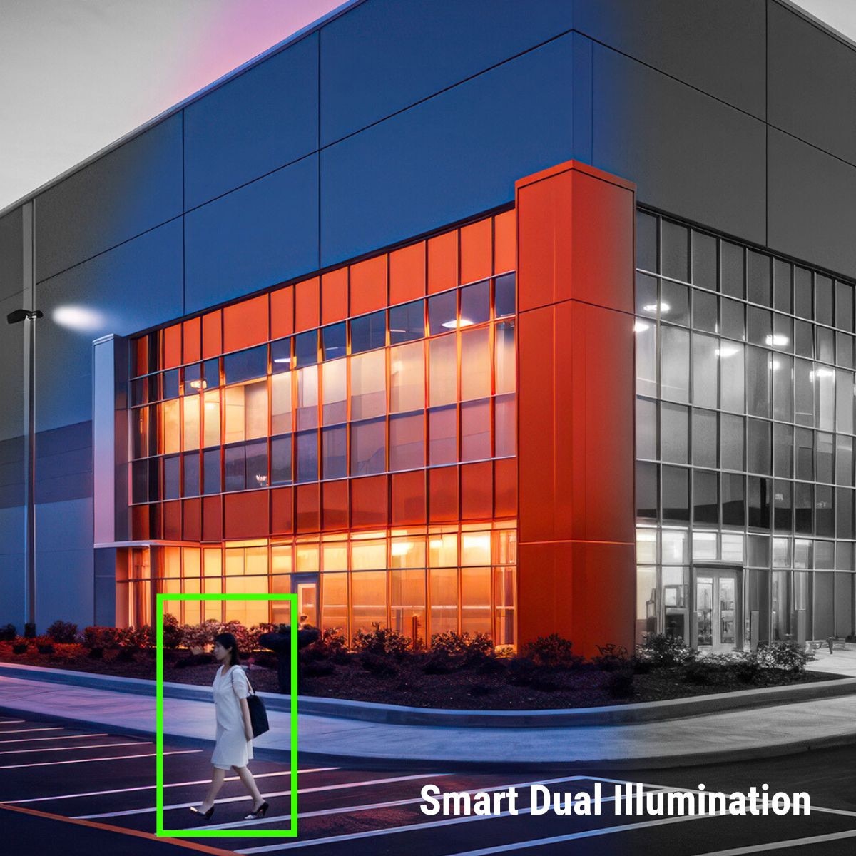 The IPEL-PE80F-ADW1 features Smart Dual Illumination, combining infrared and warm light LEDs to deliver full-color imaging up to 65 feet in complete darkness. By intelligently switching from IR to white light when a target is detected, the camera ensures you never miss critical details at night.