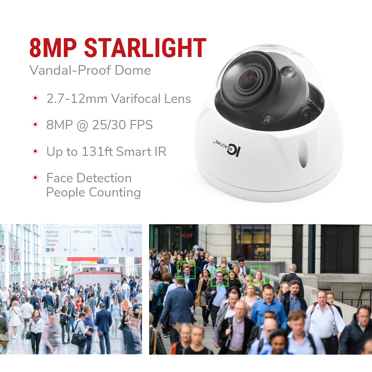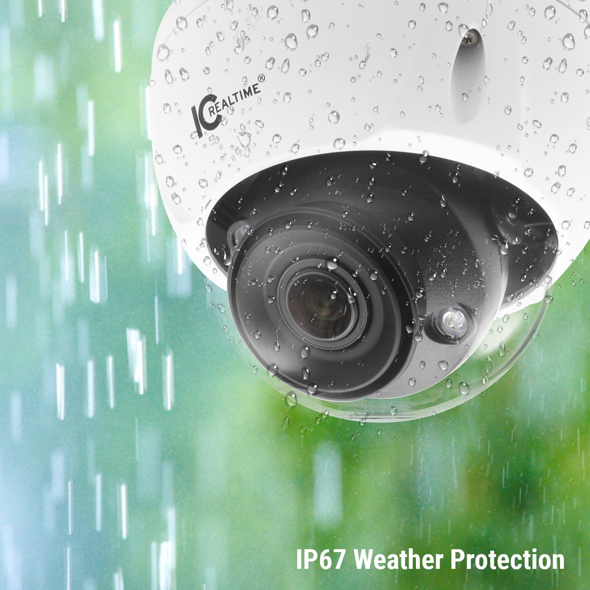 The IPFX-D80V-IRW3 is the newly upgraded edition of IC Realtime’s 8MP / 4K POE Vandal proof camera. The IRW3 version brings more FlexSmartAi capabilities, an 8MP Starlight video sensor, and the FOV flexibility of a power zoom lens to any network camera installation. Brilliant using its 8MP/4K native resolution, the camera’s widely adjustable output streams can be dialed in to meet diverse recorder & VMS stream requirements.