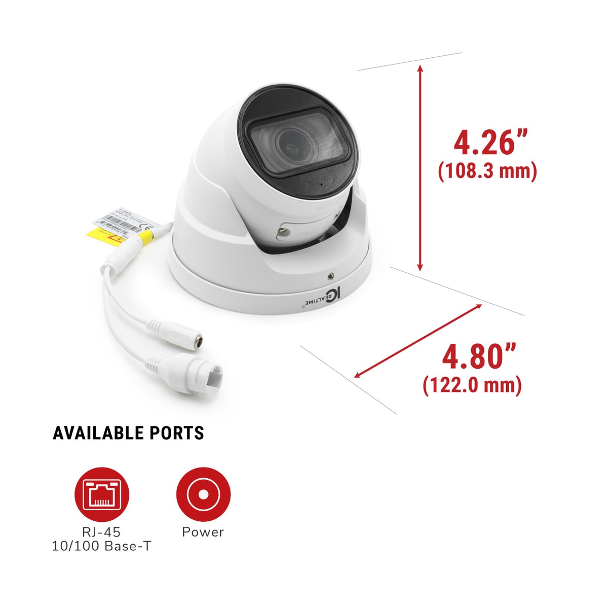 Eyeball domes are the perfect blend of bullet camera base installation ease and hunkered-down vandal dome toughness. IC Realtime has sold thousands of them since the old analog days. IC Realtime’s new metadata-streaming IPFX-E40V-IRW3’s 10-Year limited warranty is the longest available in the video security industry. And our indisputable "real world" promise of long-term dependability. IPFX-E40V-IRW3 carries on that proud legacy in an AI-enhanced, ultra-dependable PoE eyeball dome camera.
