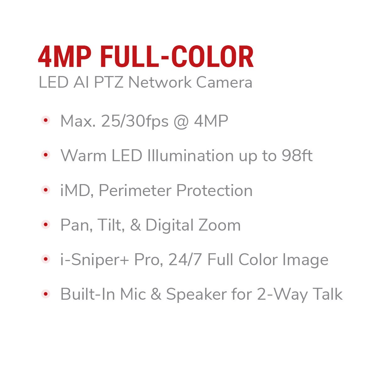 You know the call — the one that comes after hours because the footage missed the moment. The IPMX-P40F-W1-LED is built to make sure that never happens. Its 4MP STARVIS™ sensor captures detail in color even in near darkness, while the integrated PT tracks movement across wide areas automatically. When motion is detected, flashing LEDs and two-way audio provide instant deterrence, giving operators the ability to challenge intruders or communicate directly from the camera. It’s not just recording — it’s response in real time.