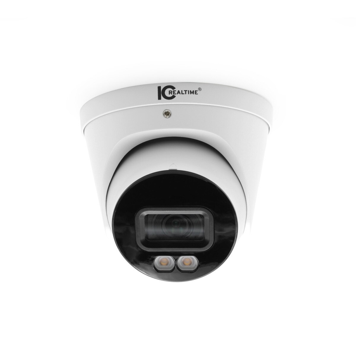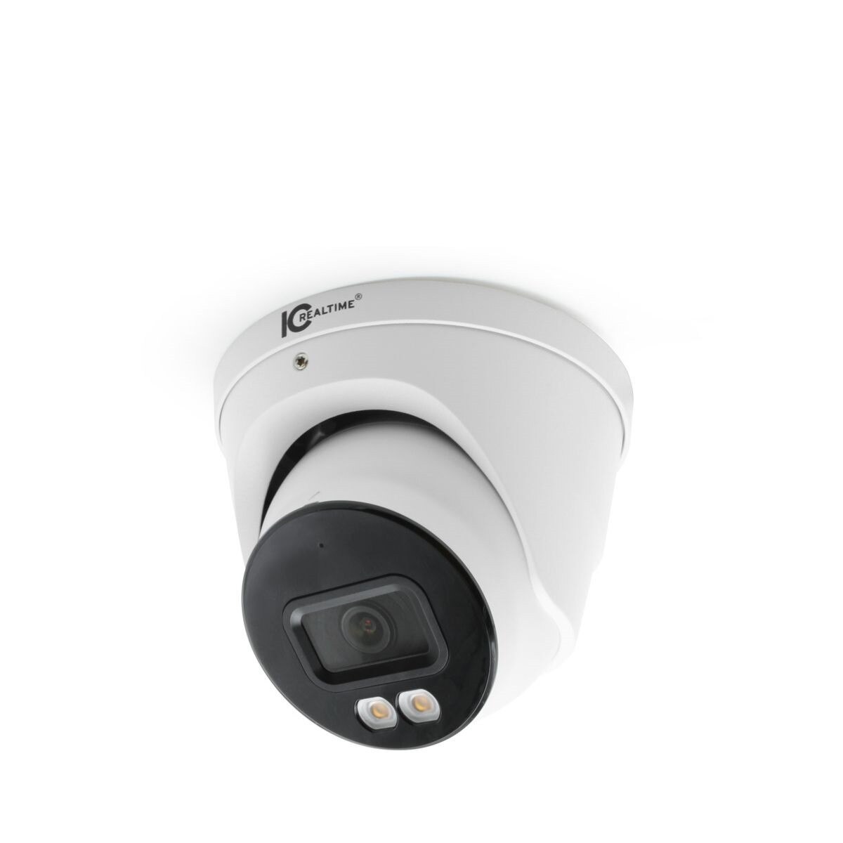 IC Realtime's latest eyeball camera is something special. This eyeball dome camera it’s built to stay in full color 24/7. Our new IPVMX-E40F-W1-LED starts with an extraordinary 4MP QHD Starlight sensor that can still see in color at light levels 3x darker than a moonless night. Then we add a special wide angle “warm white” LEDs and our new wide aperture 2.8mm lens with a 103° wide FOV. This combination results in 4MP (2688 × 1520) full-color night vision. For NVR-based or advanced “eyes & ears” for VMS systems, this eyeball dome is among the world’s best fixed-focus 24/7 color cameras.