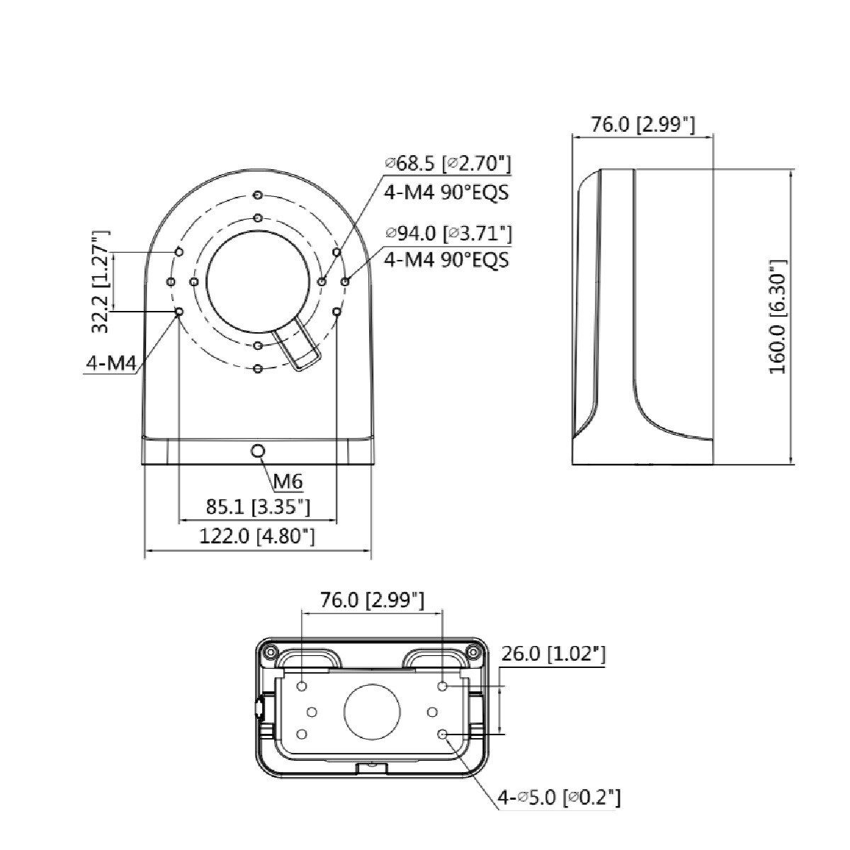 Wall Mount Bracket For Mini Eyeball/ Wedge IP IR Domes (New Style Metallic Domes such as IPMX/FX E20/ E40 series and IPMX Wedge series cameras.).