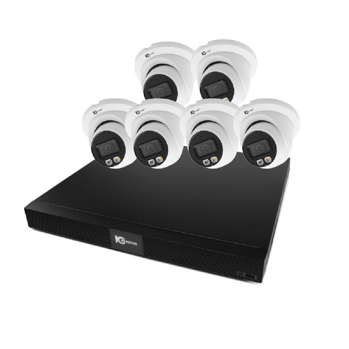 IC Realtime's new Nightwatch Pro AI bundles are designed for a seamless, stress-free installation, featuring carefully selected equipment for optimal performance. The NIGHTWATCH-PRO-AI-6ED-VFX bundle includes the NVR-VFX08POE-1U4K1 recorder with a pre-installed 2TB hard drive and six IPEG-E40F-DIW1 cameras, ensuring high-quality surveillance. The built-in 8-port PoE allows for true plug-and-play connectivity, while the cameras feature Smart Dual Illumination Technology with both IR and White LED lights for enhanced visibility. These systems integrate smoothly with our IC Now software for Windows and Mac, as well as the IC View+ mobile app for iOS and Android. Backed by a 7-year warranty and U.S.-based tech support, these kits deliver reliability and peace of mind.