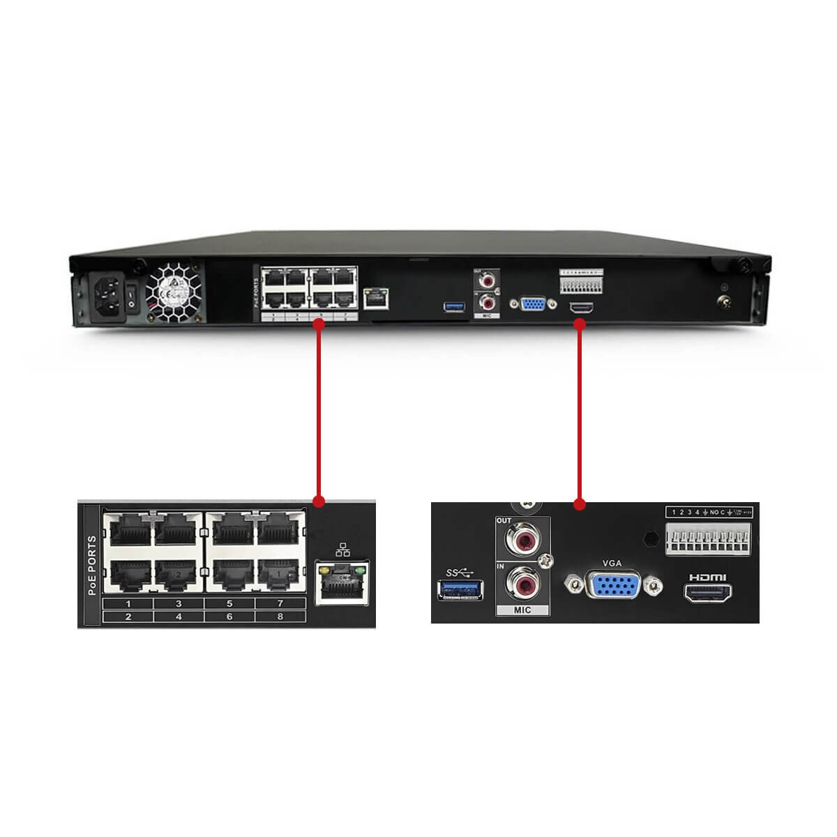 When the job demands maximum detail and clarity, extreme resolution is a requirement, not a luxury. IC Realtime's MX08POE hits the mark with 4K UHD (3840 × 2160) recording on all channels with bit rates up to 20Mbps per channel, and 4k HDMI playback output performance on full screen or on two channels at a time, or for split-screen 4 to 8 channel display MX08POE will show 1080p@30fps on all of its 8 channels.