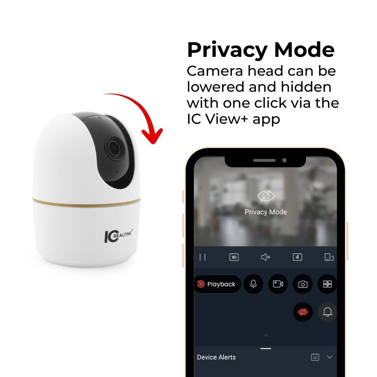 - App-Activated Siren — Trigger an audible deterrent from the IC View+ app to stop unwanted activity or alert occupants in real time.