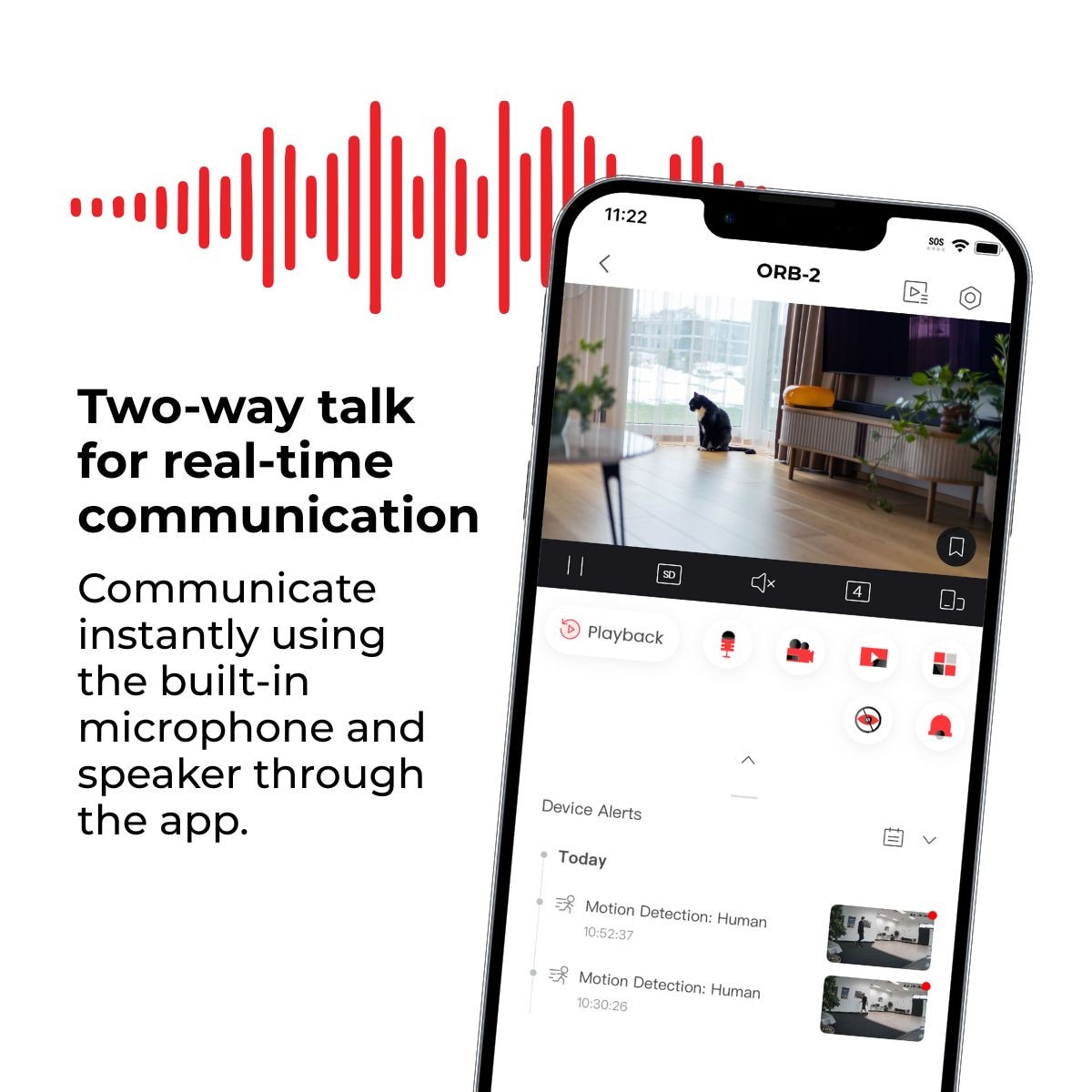 - Built-In Two-Way Audio — Talk to family, employees, or pets directly through the camera.
